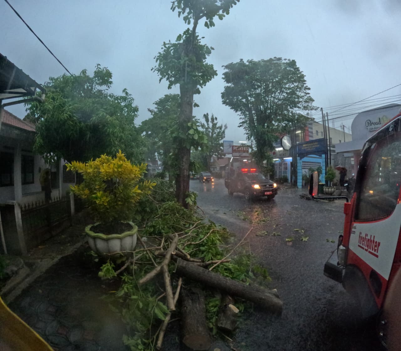 Detail Info : Cuaca Ekstrem Menyebabkan Pohon Tumbang Menimpa Kendaraan dan Jaringan Kabel di Jl. Setia Budi, Purworejo