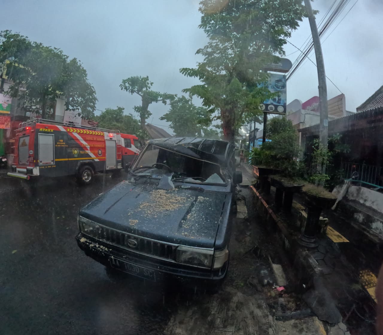 Kejadian : Cuaca Ekstrem Menyebabkan Pohon Tumbang Menimpa Kendaraan dan Jaringan Kabel di Jl. Setia Budi, Purworejo