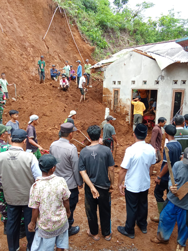 Kerusakan Dinding: Dinding rumah mengalami kerusakan parah (jebol) akibat hantaman material longsoran.